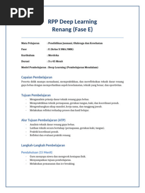 RPP Deep Learning Renang Fase E Kelas X Lengkap LKPD Rubrik