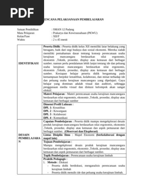 RPP XII PKWU DEEP LEARNING. dokumen isi berisi tentang renncana pelaksanaan pembelajan Mapel PKWU kelas XII materiri kerajinan